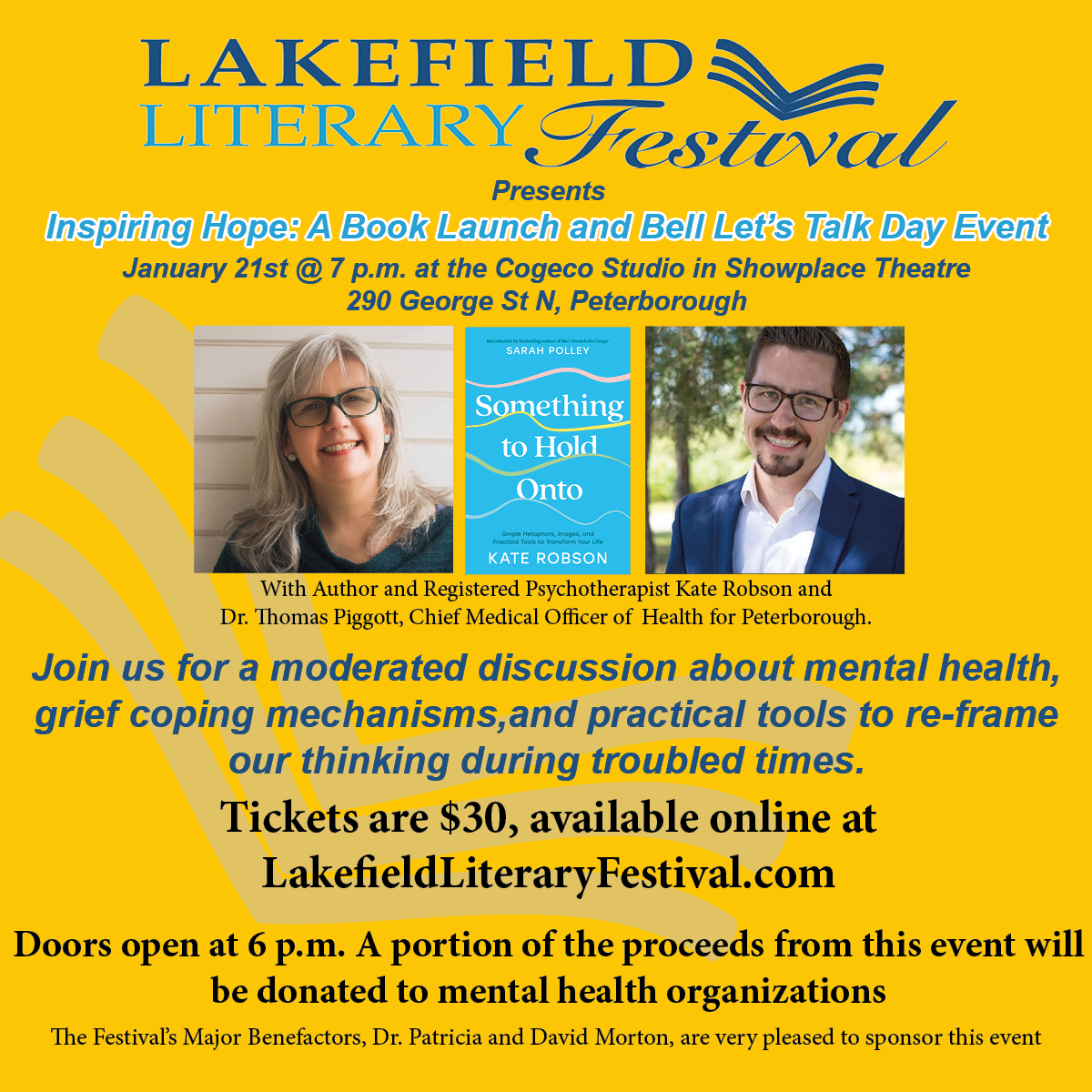 In a conversation moderated by international best-selling author Jennifer Robson, Kate Robson will launch her new book, Something to Hold Onto: Simple Metaphors, Images, and Practical Tools to Transform Your Life, in discussion with Dr. Thomas Piggot, Lakelands Public Health’s Medical Officer of Health.